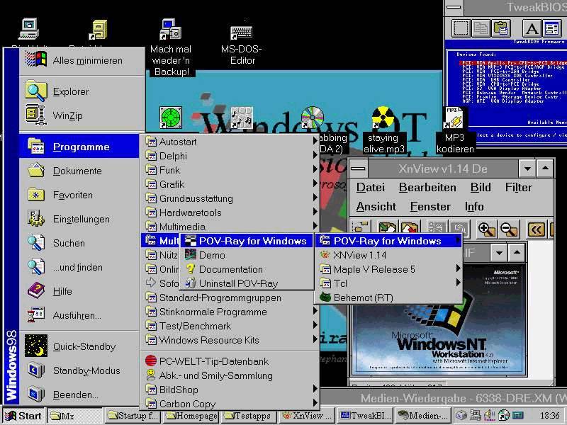 The computer is running Win98SE (for the fancy stuff) and MS-DOS 6.22